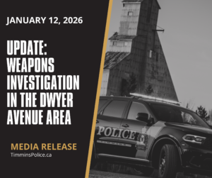 The Timmins Police Service is providing an update in relation to the weapons occurrence that took place on January 11, 2026, in the area of