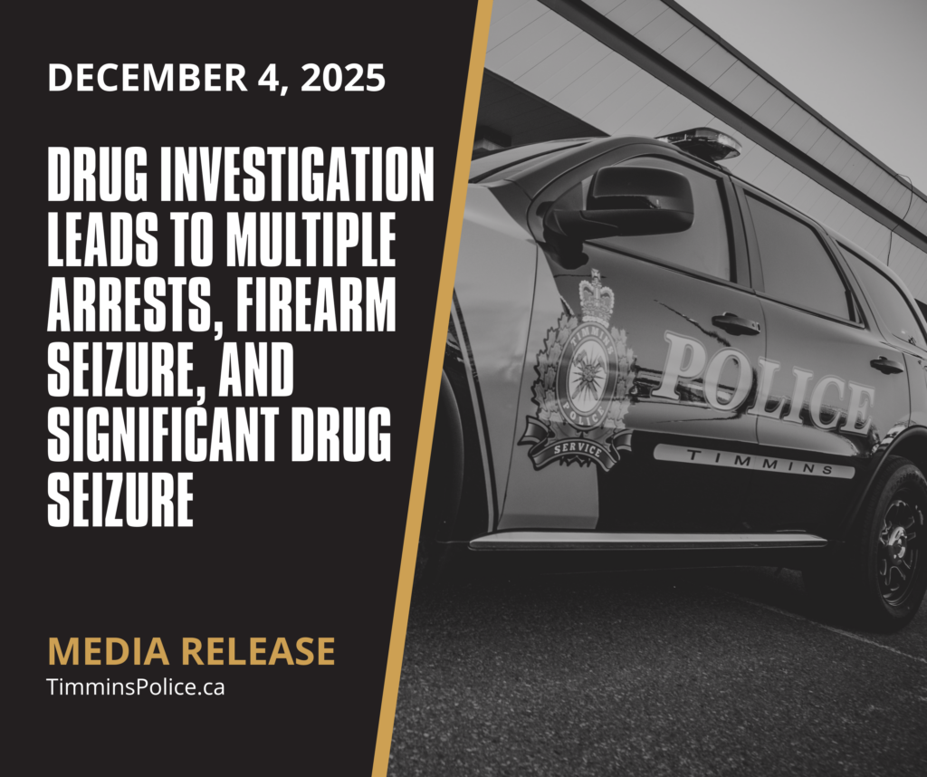 On December 3, 2025, at approximately 5:18 p.m., members of the Timmins Police Service Emergency Response Team and Drug Enforcement Unit executed a search warrant at a residence on Cedar Street North in relation to an ongoing drug investigation.