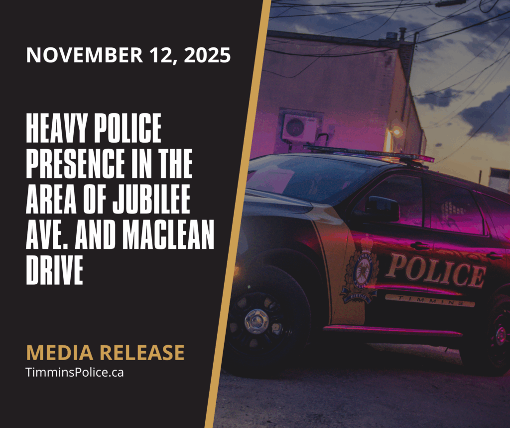 (TIMMINS) –The Timmins Police Service are currently on scene in the area of Jubilee Avenue and MacLean Drive as members of the Emergency Response Team execute a search warrant.