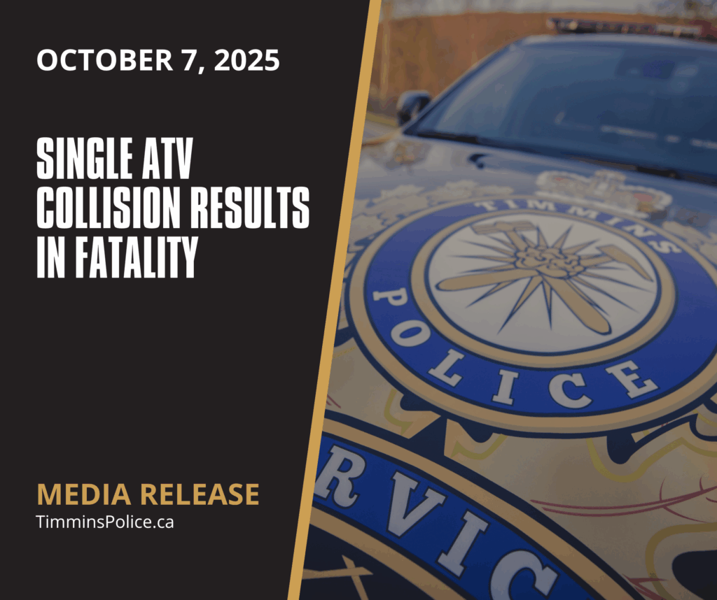 The investigation remains ongoing with members of the Timmins Police Service Traffic Division and Criminal Investigation Division working to determine the circumstances surrounding the incident.