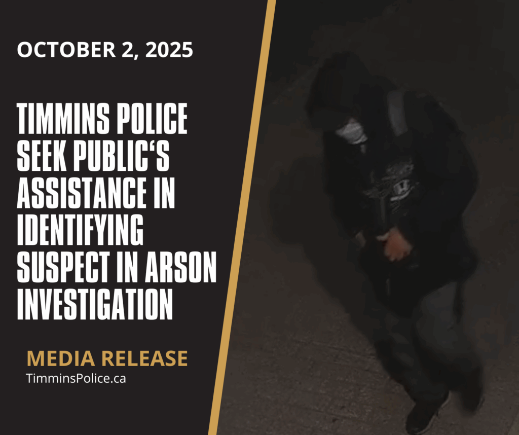 Timmins Police Seek Public’s Assistance in Identifying Suspect in Arson Investigation