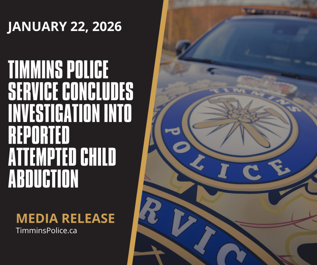 (TIMMINS) The Timmins Police Service would like to thank the public for their interest in this investigation.